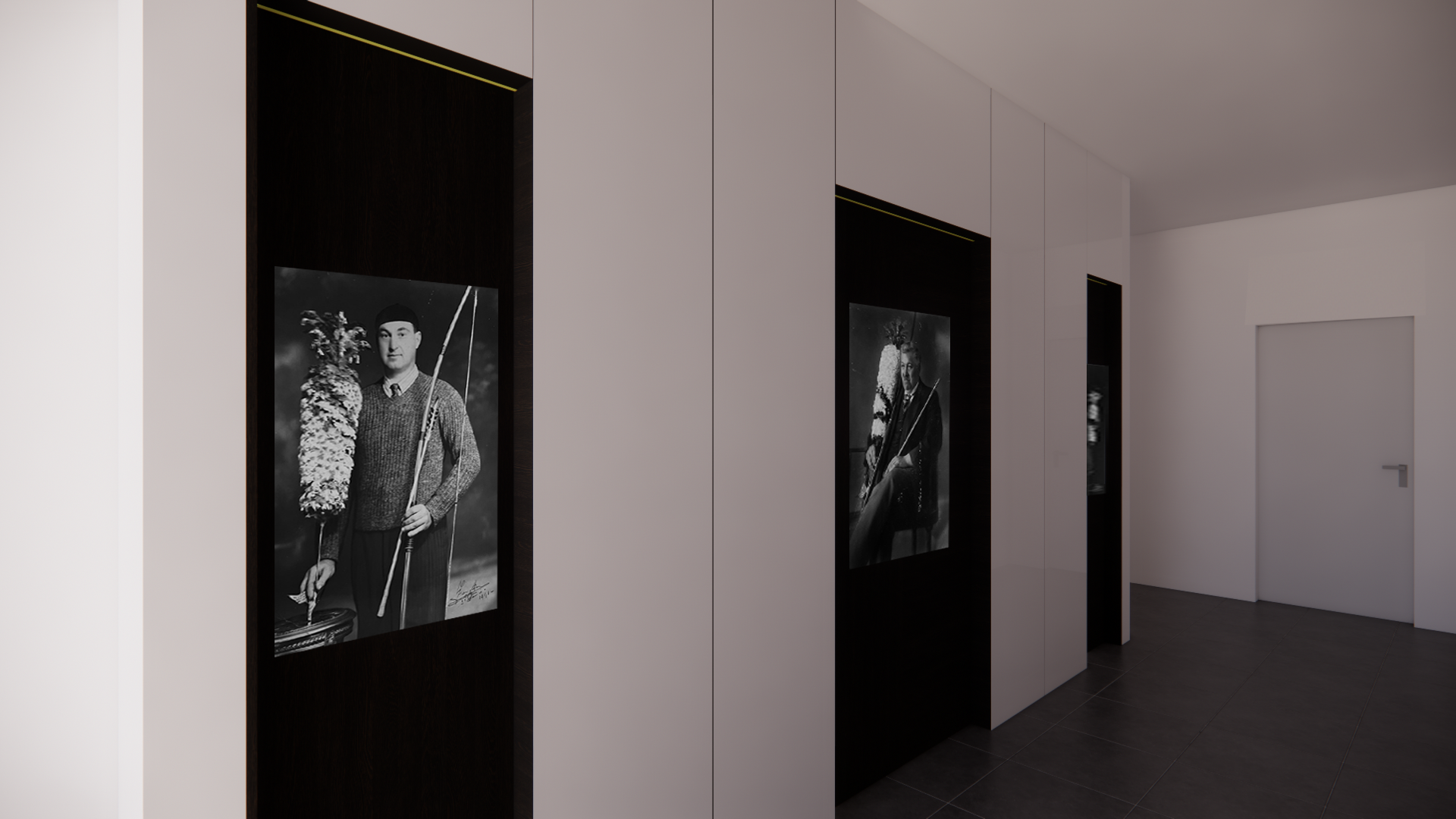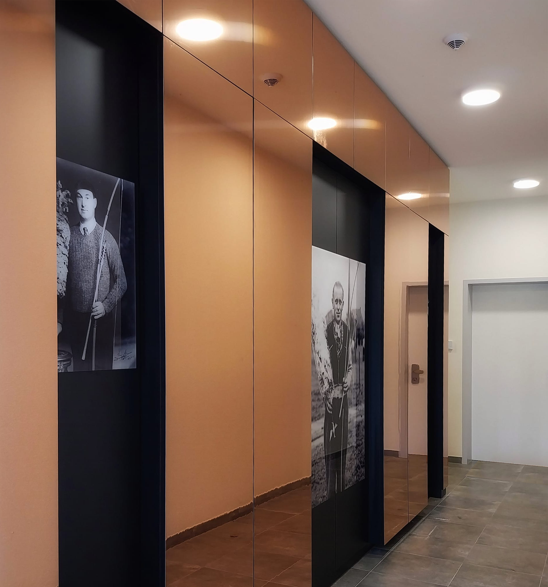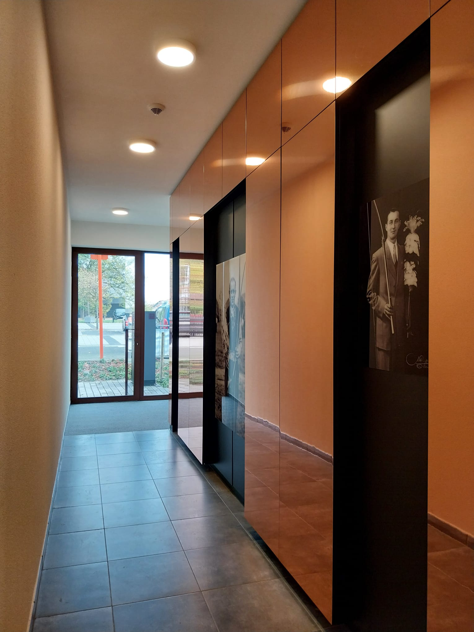 Voor een nieuwbouw appartementencomplex werd de vraag gesteld om een stukje geschiedenis in het ontwerp te integreren. Op de locatie van het appartementencomplex bevond zich vroeger een Schuttershof. Met trots presenteren we het eindresultaat: een eregalerij voor de winnaars van de schutterswedstrijden. (i.s.m. &Steels architecten)