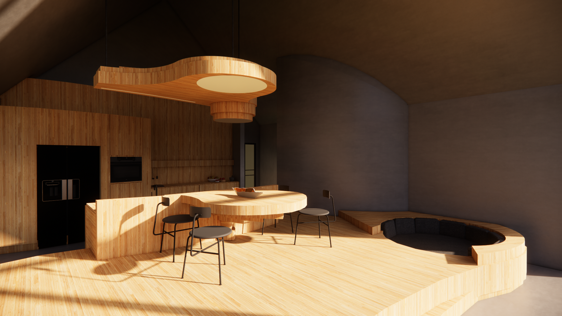 Keukenontwerp geïnspireerd op de natuur met haar organische vormen en gelaagdheid.